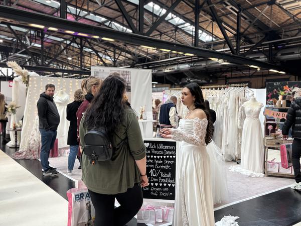 Besonders ein Event-Höhepunkt lockt viele Besucherinnen und Besucher an. „Die Brautmodenschau ist der Schlager, weil da kann man die Kleider richtig sehen. An der Puppe ist es eine Sache, aber so an Personen sieht man auch, ob die sich wohlfühlen oder nicht“, sagt Alina.