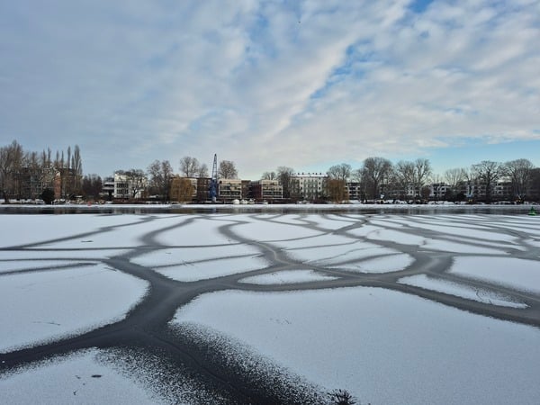 Tagesspiegel-Leser Jonas Werner teilt ein Bild der in Teilen gefrorenen Spree im Bezirk Treptow-Köpenick: