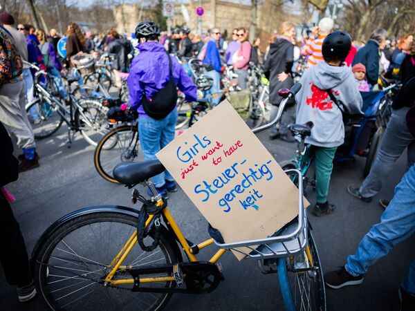 Parallel zu dem Demonstrationszug zum Roten Rathaus gab es den sogenannten Purple Ride, die traditionelle feministische Fahrraddemo linker und lesbischer Frauengruppen – mit 7.500 Teilnehmerinnen und Teilnehmern, wie die Polizei schätzte.