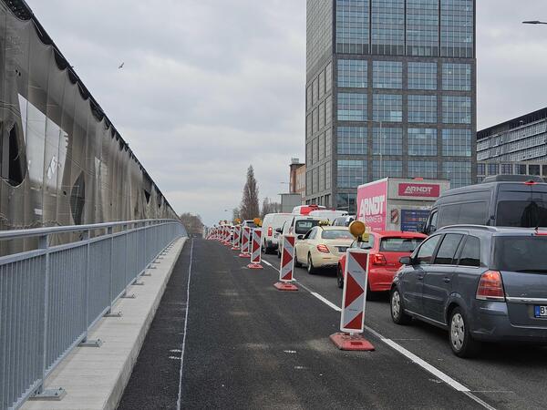 Eines müssen Autofahrer beachten: Sie müssen sich bereits vor der Brücke entscheiden, ob sie Richtung Ostkreuz oder Richtung Mitte wollen, und sich entsprechend einordnen.