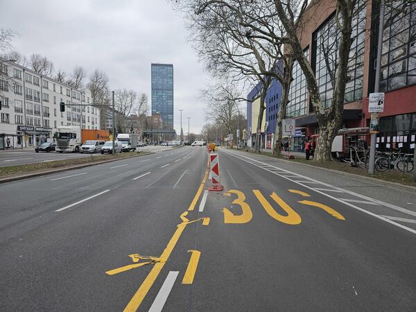Wegen des Dauerstaus war die Grünphase drastisch verkürzt worden: Nur noch alle 90 Sekunden gibt es für eine kurze Phase Grün, mehr als 16 bis 20 Autos schaffen es nicht von der Autobahn auf die Straße Am Treptower Park. Jetzt aber ist der Weg Richtung Brücke frei, die Straßen sind leer.