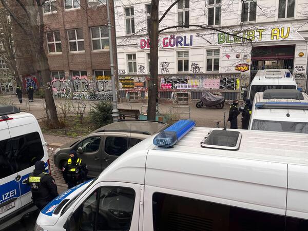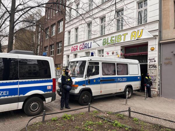 „Sie haben sehr viel Zeit gebraucht, um ins Haus zu kommen. Schließlich haben sie mit einem Rammbock die Scheibe des Infoladens eingeschlagen“, sagt der Späti-Besitzer, der anonym bleiben möchte. Sein Geschäft sei nicht durchsucht worden. „Hier sind sie nicht mal reingekommen.“ Mit den Bewohnern habe er ein gutes Verhältnis. „Aber ich weiß, so etwas kann hier passieren. Das Haus ist ja bekannt.“