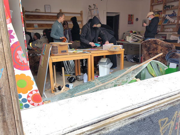 Der „Infoladen“ ist ein Teil des Hausprojekts und zeigt das Engagement zu verschiedenen Stadtthemen wie Obdachlosigkeit. Er befindet sich in einem Ladenlokal im Erdgeschoss.