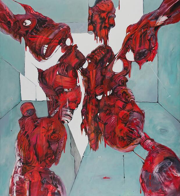 Das Gemälde „iceroom“ sei ein Wendepunkt gewesen, eine Möglichkeit, diese Wut künstlerisch produktiv herauszulassen, sie fassbar zu machen.