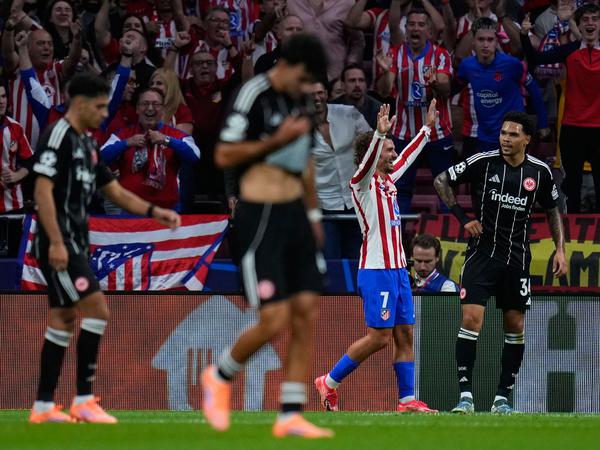 Eintracht Frankfurt hat das Gastspiel bei Atlético Madrid mit 1:5 (0:3) verloren und nach dem starken Auftakt einen herben Dämpfer in der Champions League kassiert. Giacomo Raspadori in der 4. Minute, Robin Le Normand (33.), Antoine Griezmann (45.+1), Giuliano Simeone (70.) und Julián Alvarez (82./Handelfmeter) erzielten die Tore für die in allen Belangen überlegenen Spanier, die dem Bundesligisten eine Königsklassen-Lektion erteilten.