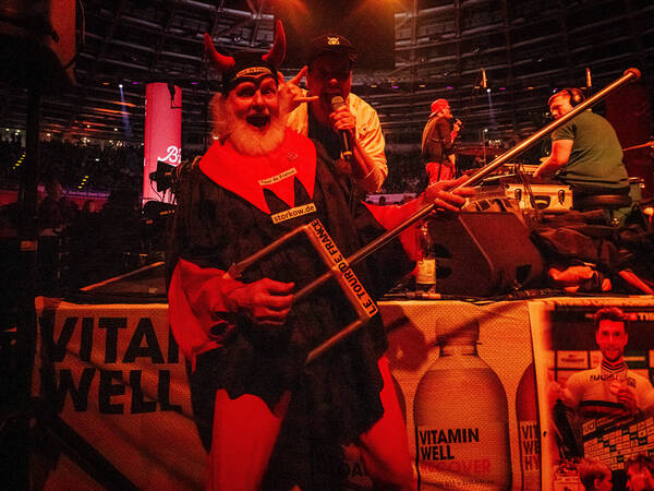 Dieser Teufel brennt wirklich nicht mehr. Mit hängenden Schultern schlurft er in seinem schwarz-roten Gewand im Innenbereich bei den Sixdays im Berliner Velodrom herum. Die Fahrer ein paar Meter neben ihm jagen immer noch durchs Oval, und auch die Musik – nach AC/DC läuft jetzt Jon Bon Jovi – will nicht stoppen.